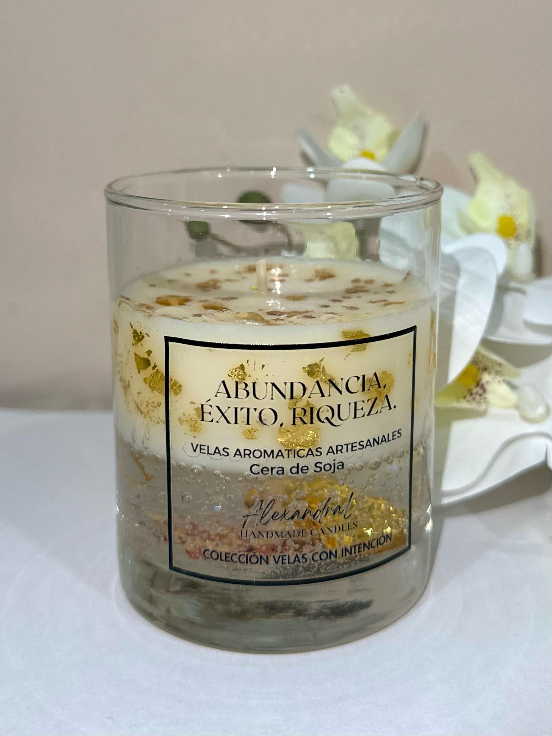 -Vela aromática de cera de soja 100% natural y parafina en gel con hoja de oro.