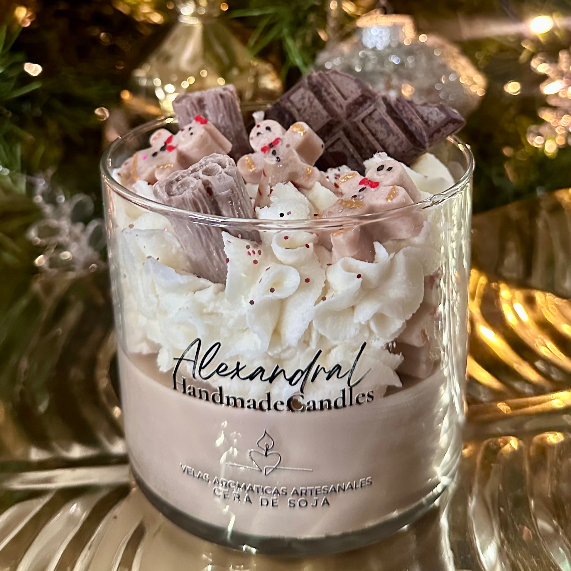 Vela aromática de cera de soja con diseño de figuras de gengibre con betún.